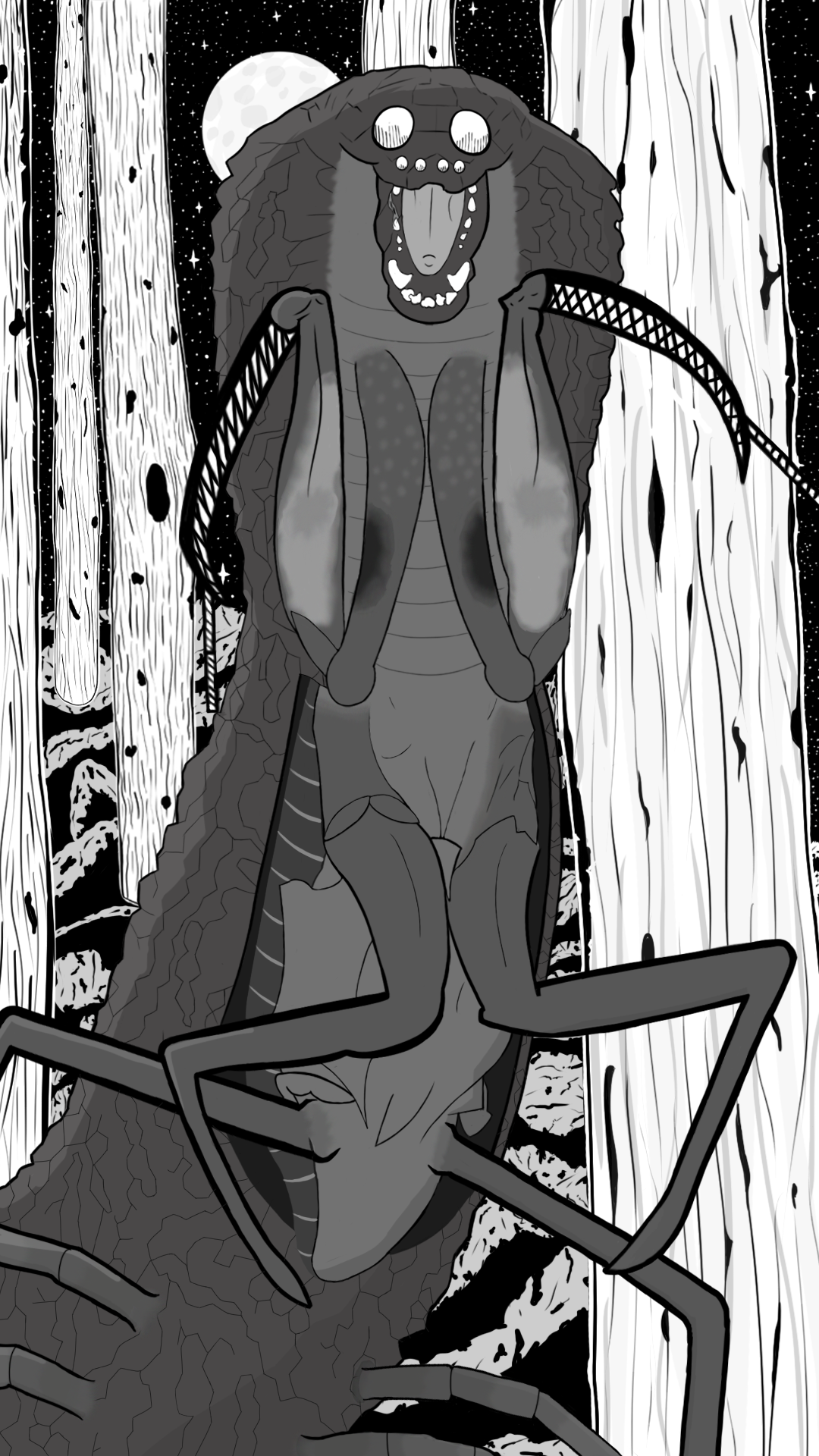 This is one of the primary types of enemies found in our manga. Made full in grayscale in Photoshop. This will be one of our pages in Spirit Linked.